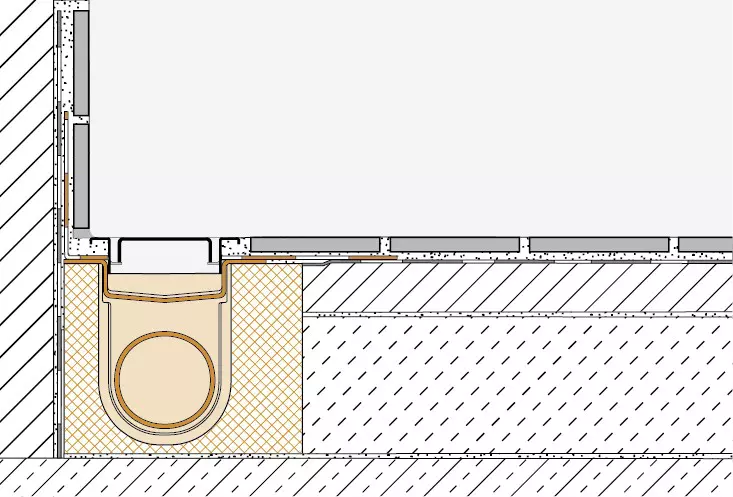 KERDI-LINE-H en -V kan als compleet systeem met de bijpassende Schlüter-KERDI-SHOWER-L afschotplaat en geïntegreerde KERDI-afdichting worden geïnstalleerd (zie productfiche 8.8). In principe is het mogelijk een dekvloer met afschot te realiseren. De dekvloer moet u dan aan het oppervlak afdichten met Schlüter-KERDI (zie productfiche 8.1), DITRA (zie productfiche 6.1) of -DITRA-HEAT (zie productfiche 6.4).