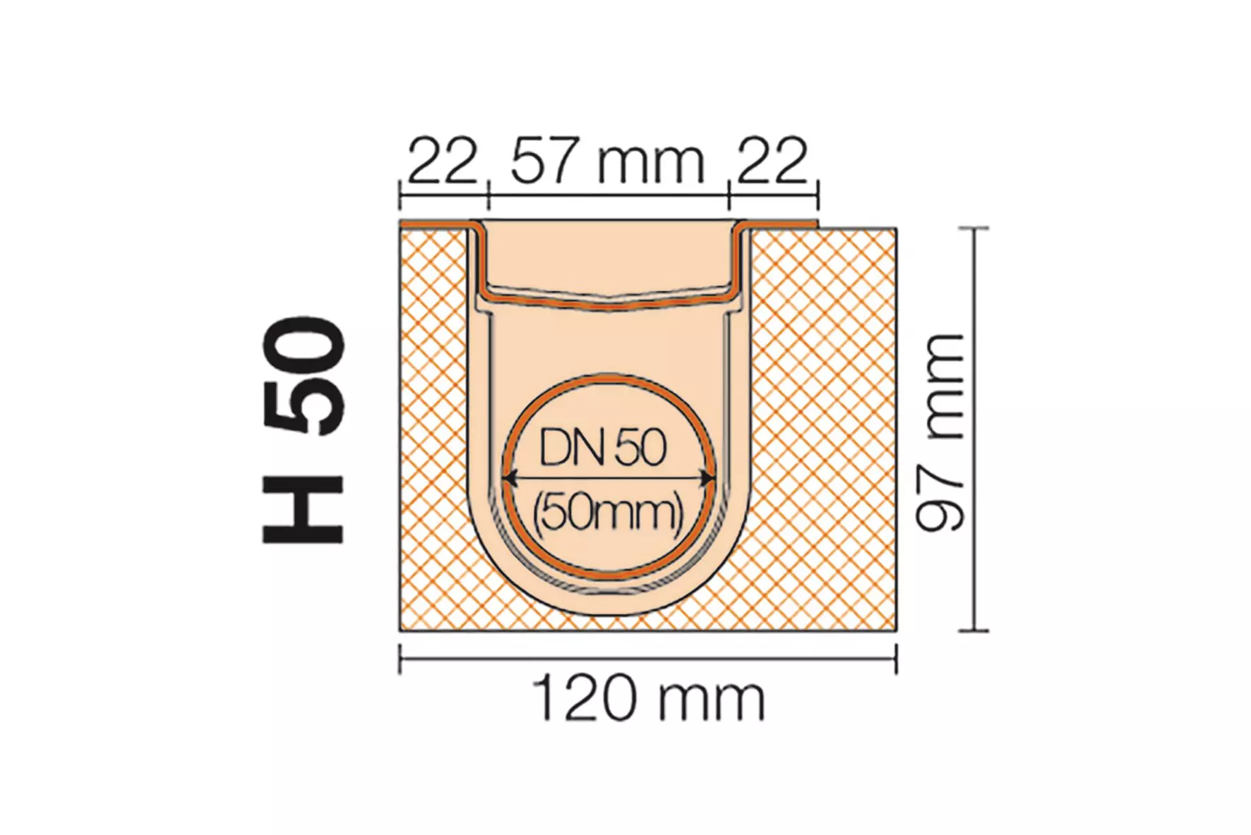 - Breedte van de afdekking incl. frame: 74 mm (DN 40 / DN 50)