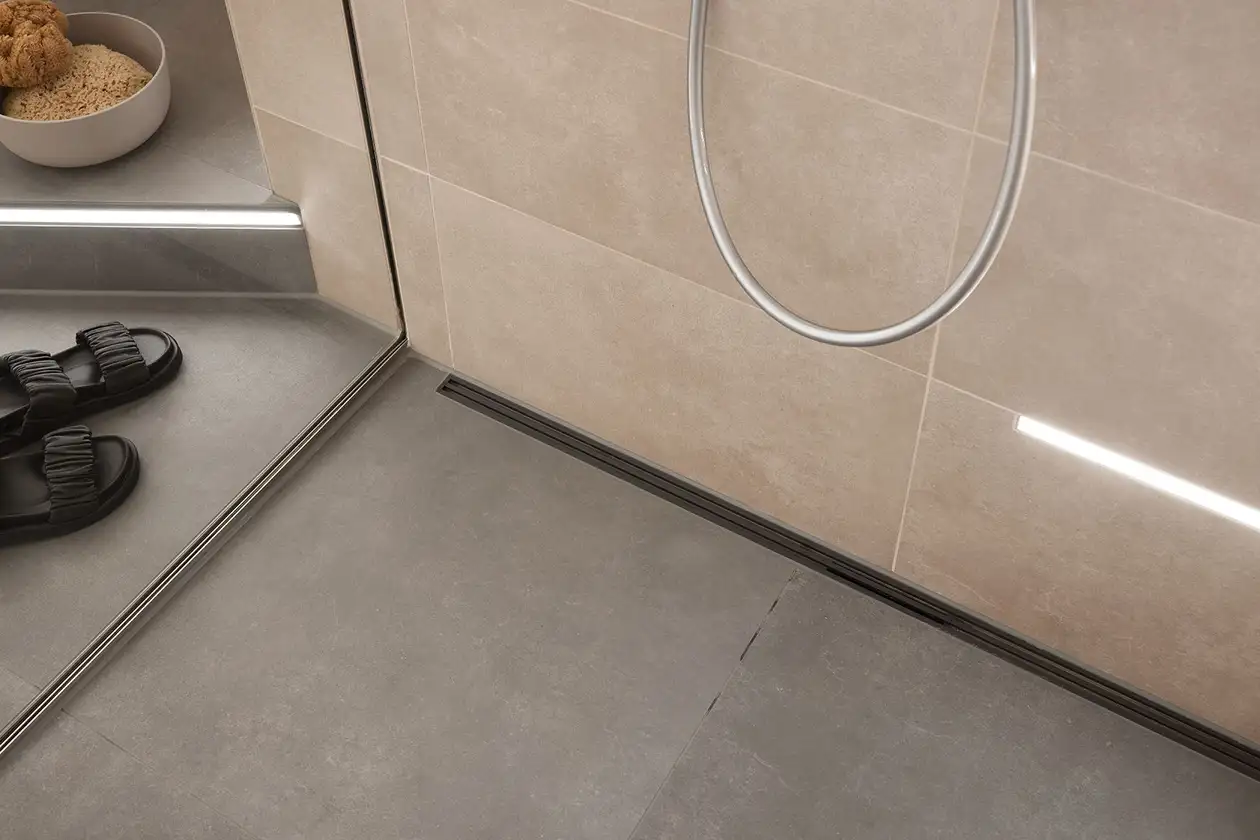 Het systeem combineert de betrouwbare afwatering van gelijkvloerse douches en wastafels met elegante roosters en frames.