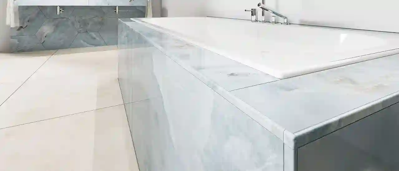 Als uit één stuk gegoten: in bekledingsdesign bedrukte profielen zorgen voor onopvallende afsluitingen, zoals hier bij de individuele wastafeloplossing KERDI-BOARD-W.