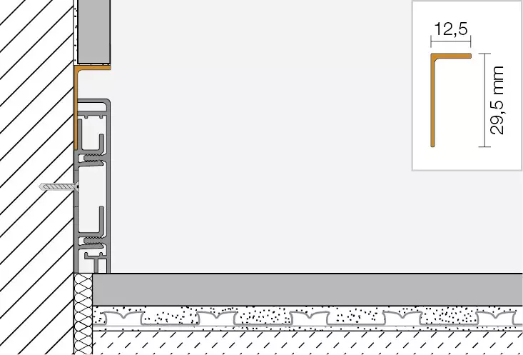 Om de DESIGNBASE-CQ plintprofielen goed met de muur te laten aansluiten, adviseren wij u van het hier weergegeven aluminium hoekprofiel gebruik te maken. Hierdoor kunt u een zogenaamde "schaduwvoeg" als blikvanger creëren en tegelijkertijd voor een ruimtelijke scheiding tussen profiel en muur zorgen.