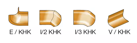 • ECK-KHK-EB/E zijn overeenkomstige buitenhoeken van 90° van geborsteld roestvast staal V2A