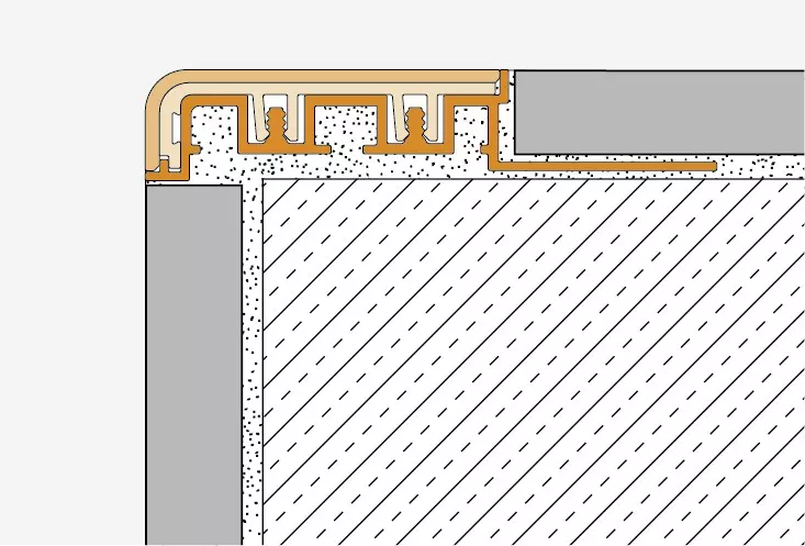 Daarom moeten profielnaden, indien nodig, op gelijke hoogte worden gelegd als de voegen van de aangrenzende bekleding. De profielen zijn alleen geschikt voor binnentoepassingen.