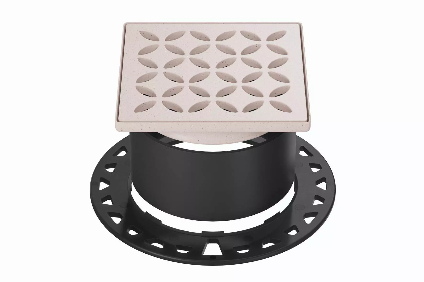 W zależności od wariantu niektóre kratki są też wyposażone w sitko zatrzymujące zanieczyszczenia. Ponieważ syfon jest już zintegrowany w zestawach odpływu podłogowego, zestawy Schlüter-KERDI-DRAIN-RRE nie muszą być w niego wyposażone.