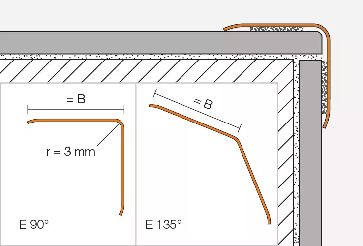 Profile ECK-K są formowane z pasm blachy ze stali nierdzewnej V2A (nr materiału 1.4301) lub V4A (nr materiału 1.4404). Nadają się one w szczególności do zastosowań, w których obok wysokiej odporności mechanicznej wymagana jest także odporność na chemikalia, np. substancje kwaśne lub zasadowe bądź środki czyszczące.