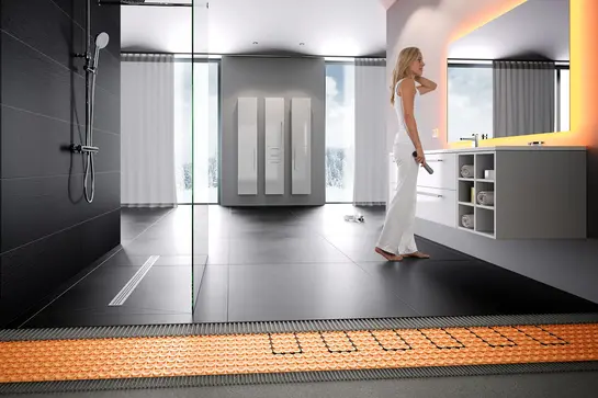 Błogie ciepło zimą i orzeźwiający chłód latem: mało który system ogrzewania podłogowego jest tak wszechstronny, energooszczędny i trwały jak Schlüter-BEKOTEC-THERM. Jego przemyślana technologia pozwala na zachowanie rekordowo niewielkiej grubości konstrukcji i znaczne skrócenie czasu budowy – zarówno w nowo wznoszonych budynkach, jak i podczas remontów. Odkryj nasz wielokrotnie nagradzany, oryginalny system.