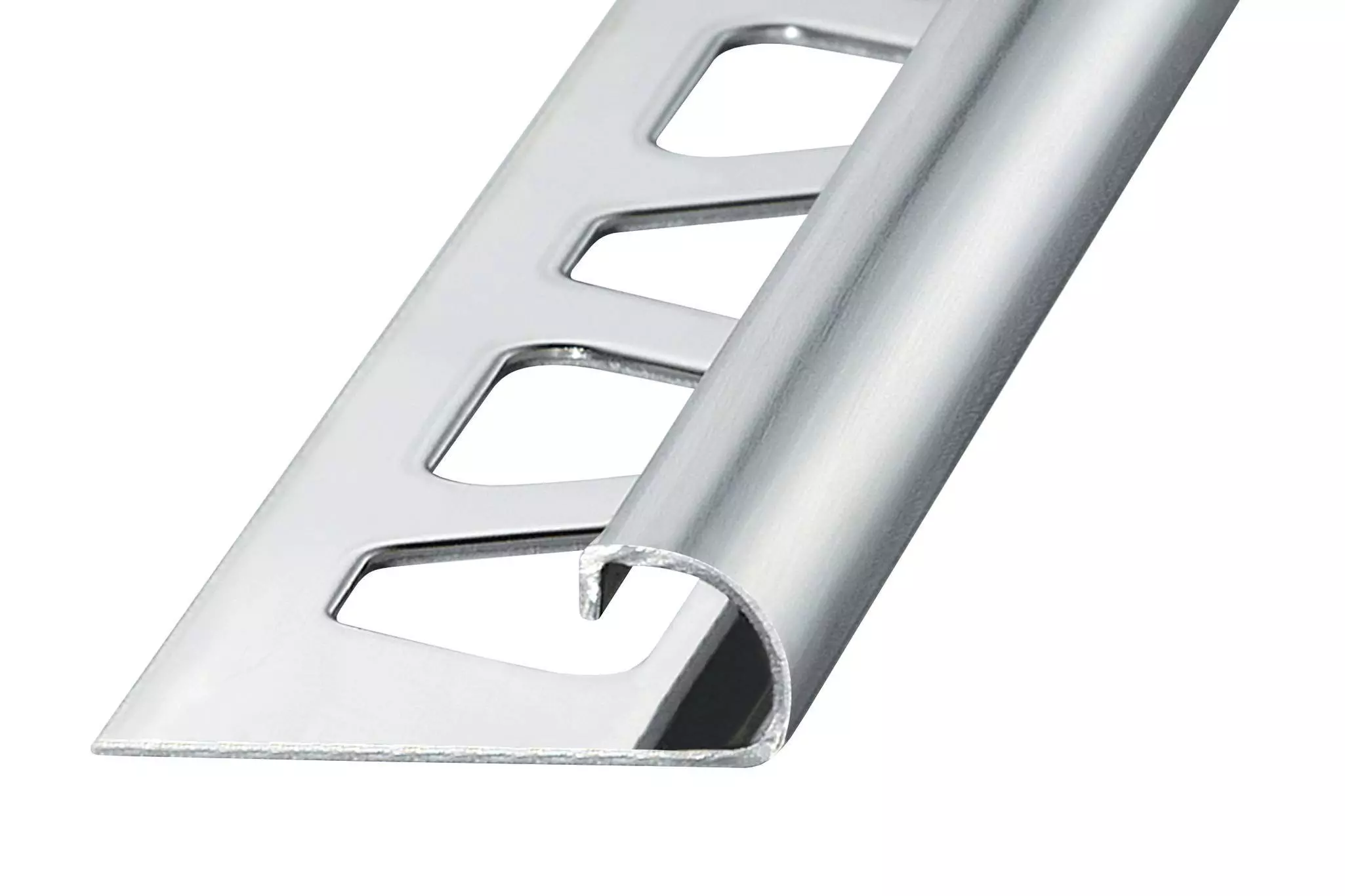 Schlüter-RONDEC-E (aço inoxidável) nos materiais 1.4301 (V2A) ou 1.4404 (V4A) é especialmente adequado quando são esperadas elevadas cargas mecânicas ou químicas especiais. As áreas de aplicação são, p. ex., a indústria alimentar, cervejarias, leitarias, cozinhas industriais e hospitais, bem como residências particulares. Segundo as agressões químicas esperadas pode-se eleger entre as ligas de material 1.4301 ou 1.4404. Com cargas elevadas, por ex., em piscinas (água doce), recomendamos a utilização de 1.4404.