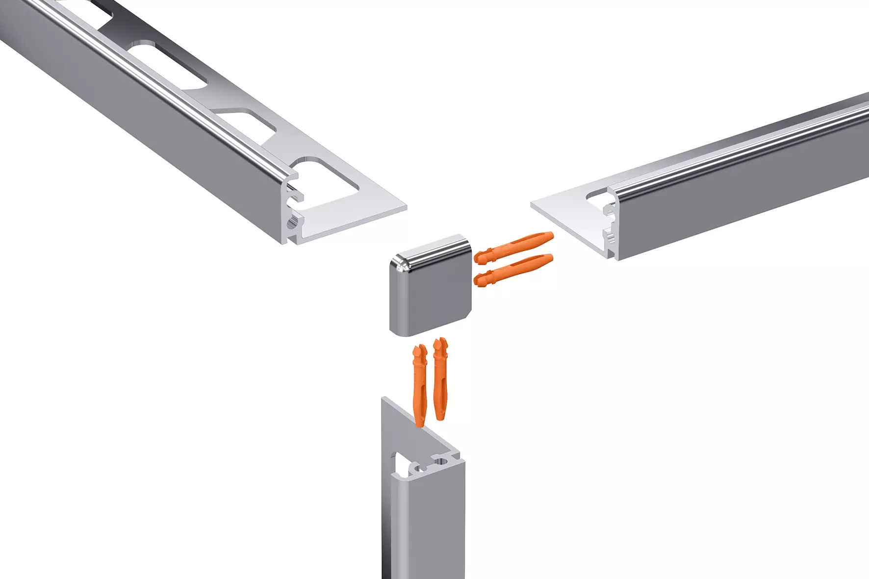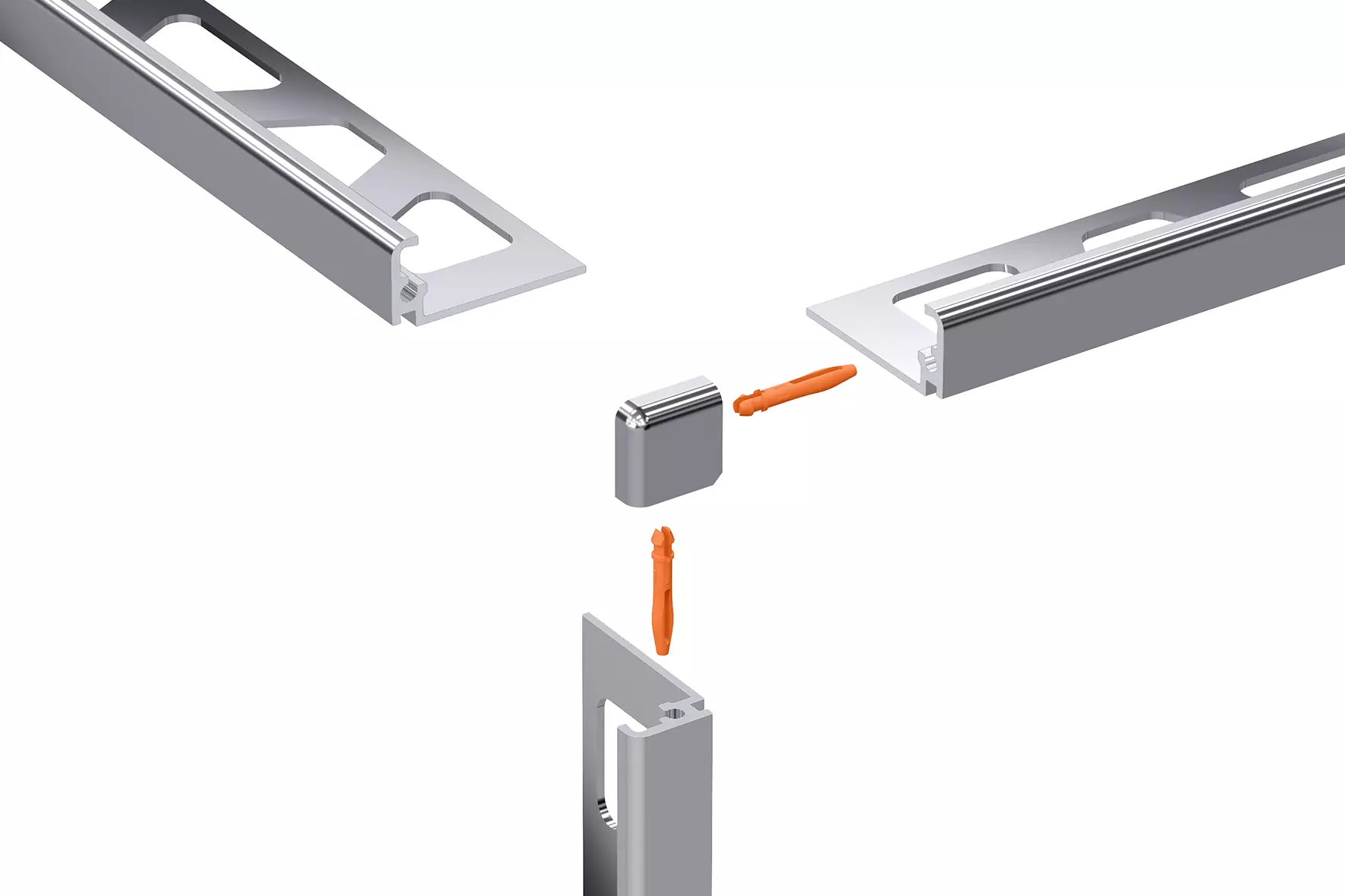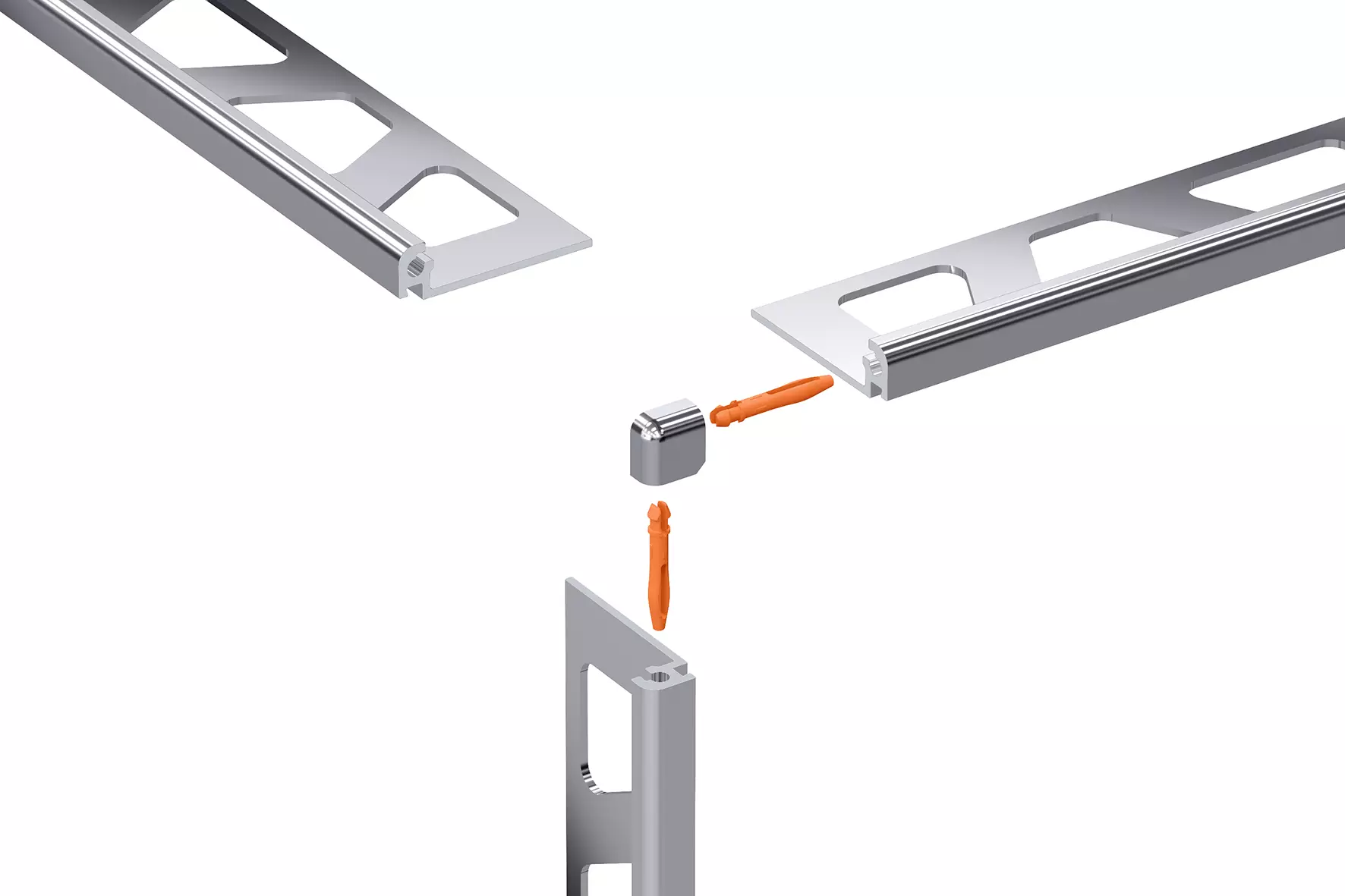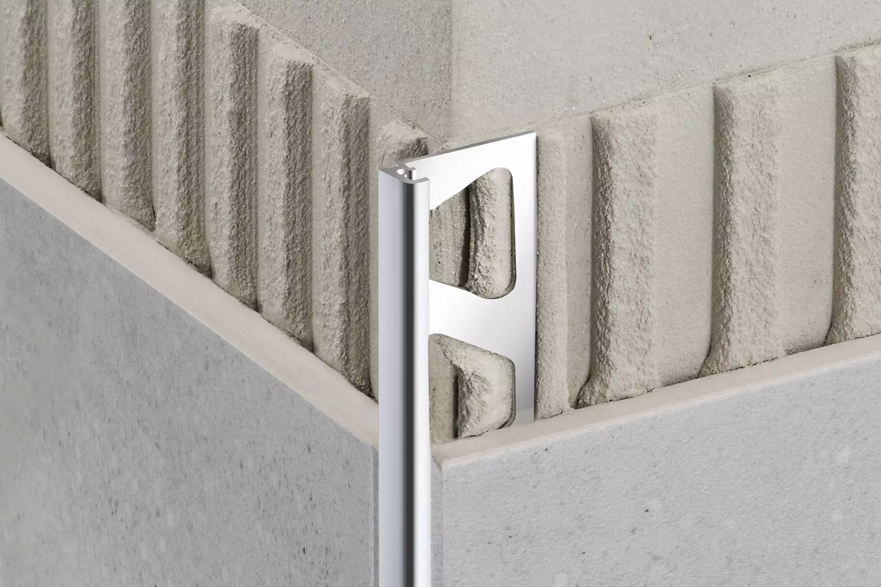 Schlüter-JOLLY-AE (alumínio anodizado): o alumínio apresenta uma superfície aperfeiçoada devido à camada anodizada que não se altera com a utilização normal. As arestas visíveis devem ser protegidas contra objetos que provoquem desgaste ou riscos. O alumínio é sensível a meios alcalinos. Os materiais à base de cimento desenvolvem propriedades alcalinas sob a influência de humidade e, dependendo da concentração e do tempo de atuação, podem dar origem à corrosão (formação de hidróxido de alumínio). Por esse motivo, a argamassa ou o material para juntas em superfícies visíveis devem ser removidos imediatamente e os revestimentos acabados de colocar não devem ser cobertos com película. O perfil deverá estar em contacto com a cerâmica em toda a sua superfície, evitando assim a acumulação de água alcalina nas cavidades.