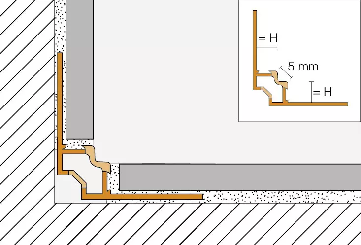 Schlüter-DILEX-EF, yanal sabitleme kanatları için sert PVC rejenere malzeme ve genleşme bölgesi için de yumuşak CPE malzeme kombinasyonundan oluşur.