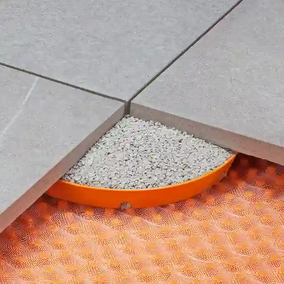 Schlüter-BARA-RKLT'nin T şeklindeki profil odacığına Schlüter-BARIN sabitlenir ve bu drenaj delikleriyle kombine edildiğinde sızıntı suyunun güvenilir bir şekilde dışarı atılmasını sağlar.